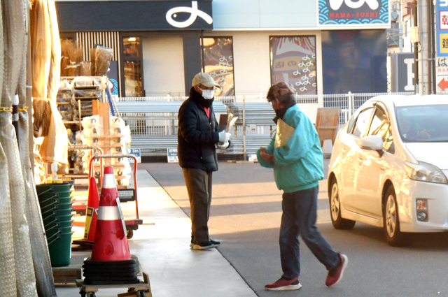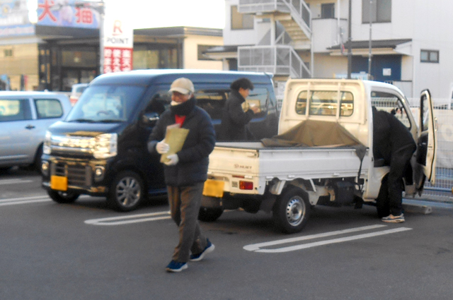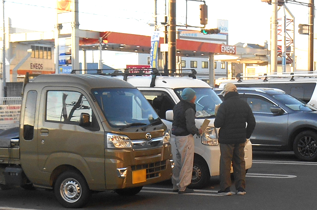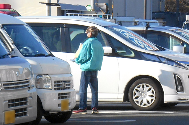 朝起きてテレビを点けると今朝の気温は4℃との事でした。今日の現場は伊丹昆陽店です。6時半に家を出て20分程で、現地に着きました。今までは6時半スタートでしたが今回から7時スタートにして少し余裕があります。お店は既に開店しているので早速に店長に挨拶に行くとカウンター前はレジ待ちをしている方が数人おられました。店外へ出てこられるのを待って資料を手渡しました。暫くして谷口さんと平井さんが到着されました。お店の方にカイロが要る様なら言って下さいと声を掛けて頂きました。開店直後は近隣の職人さんが多く駐車場が満車状態になり早朝からバタバタしました。他府県ナンバーの車は無視して県内ナンバーの来店者のみに配布しました。さすがに9時を回ると他府県ナンバーの数も増えて来ます。資料を手渡す中で数日前に怪我してナーと声を掛けられ聞いてみると保険が無いので医者に行けてないとの事でしたので、労災に加入を勧め名刺を渡しました。 詳しくは支部事務所に問い合わせて下さい。 組織部 |